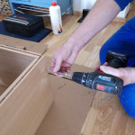 Dann widmeten wir uns den Türblättern. Die Besonderheit liegt hier bei den Türbändern, welche die beiden Türblätter miteinander verbinden. Bei der Montage der Türbänder muss unbedingt darauf geachtet werden, diese beim Einschrauben ca. 1mm aus der Fräsung im Türblatt herausschauen zu lassen. Etwas ungewöhnlich, vor allem dann, wenn man gewöhnt ist alles bündig oder passgenau zu arbeiten. Aber hier war nicht bündig genau richtig.